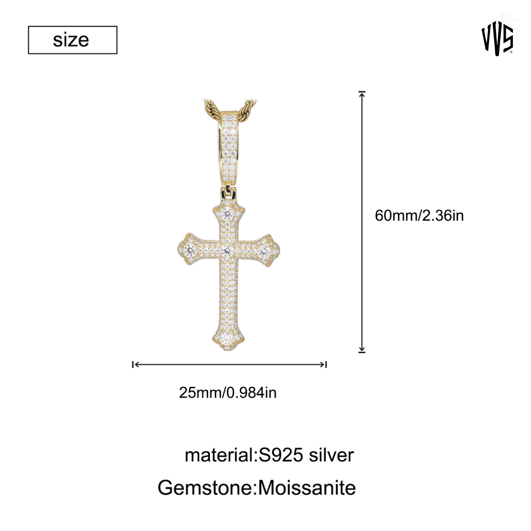 Classic Cross Pendant 925 Silver (Pass Diamond)
