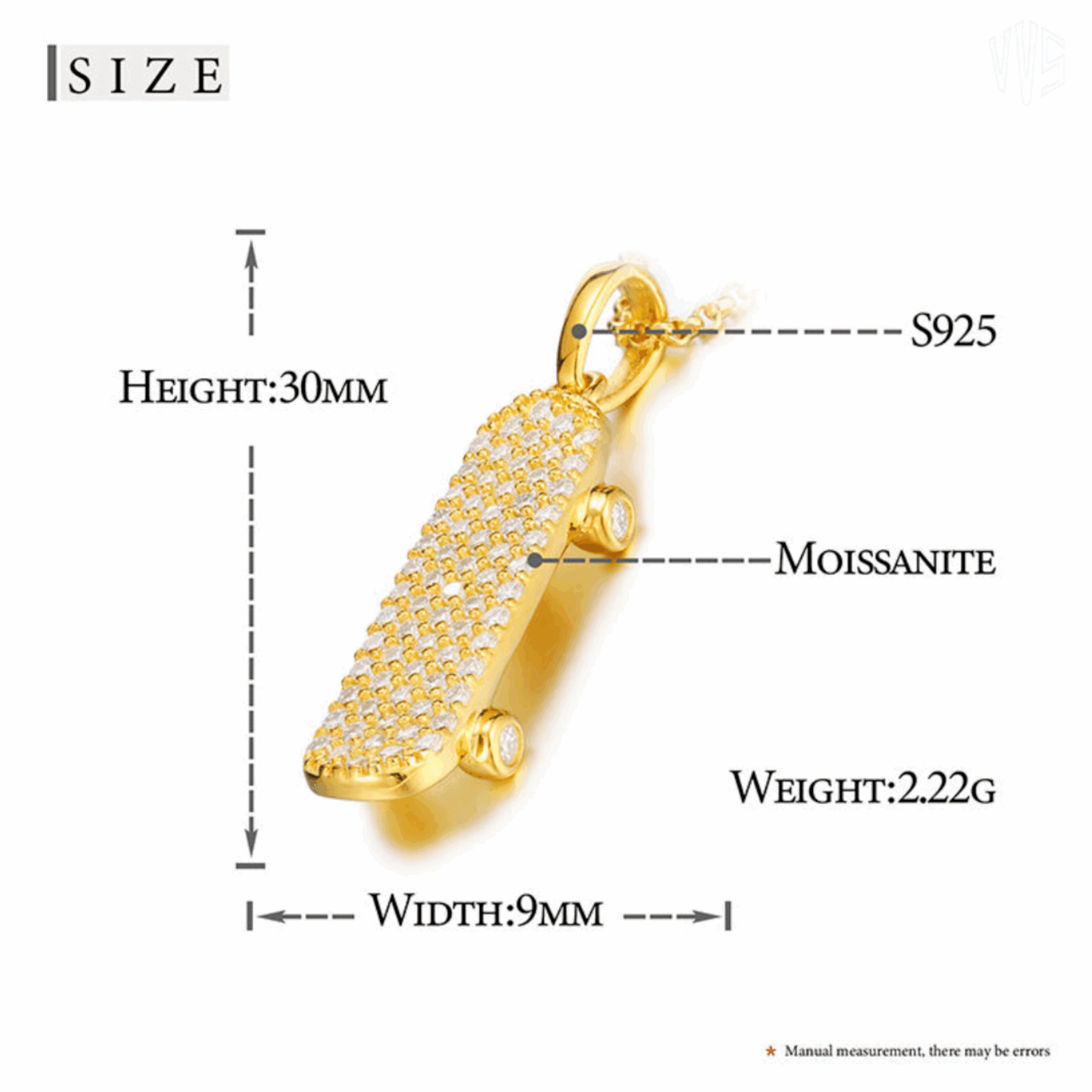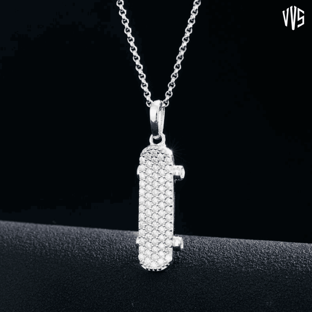 Skateboard Pendant Silver 925 (Pass Diamond)
